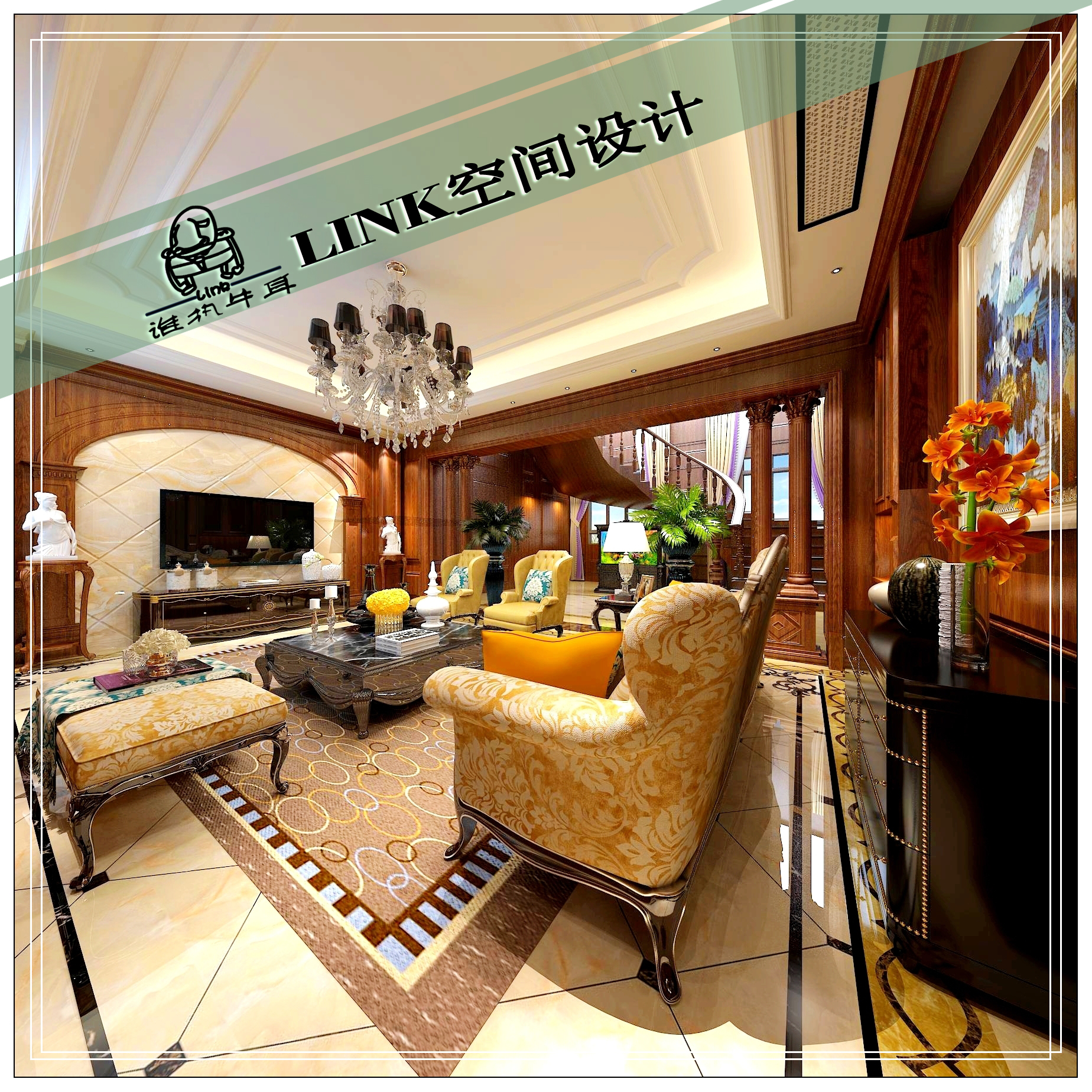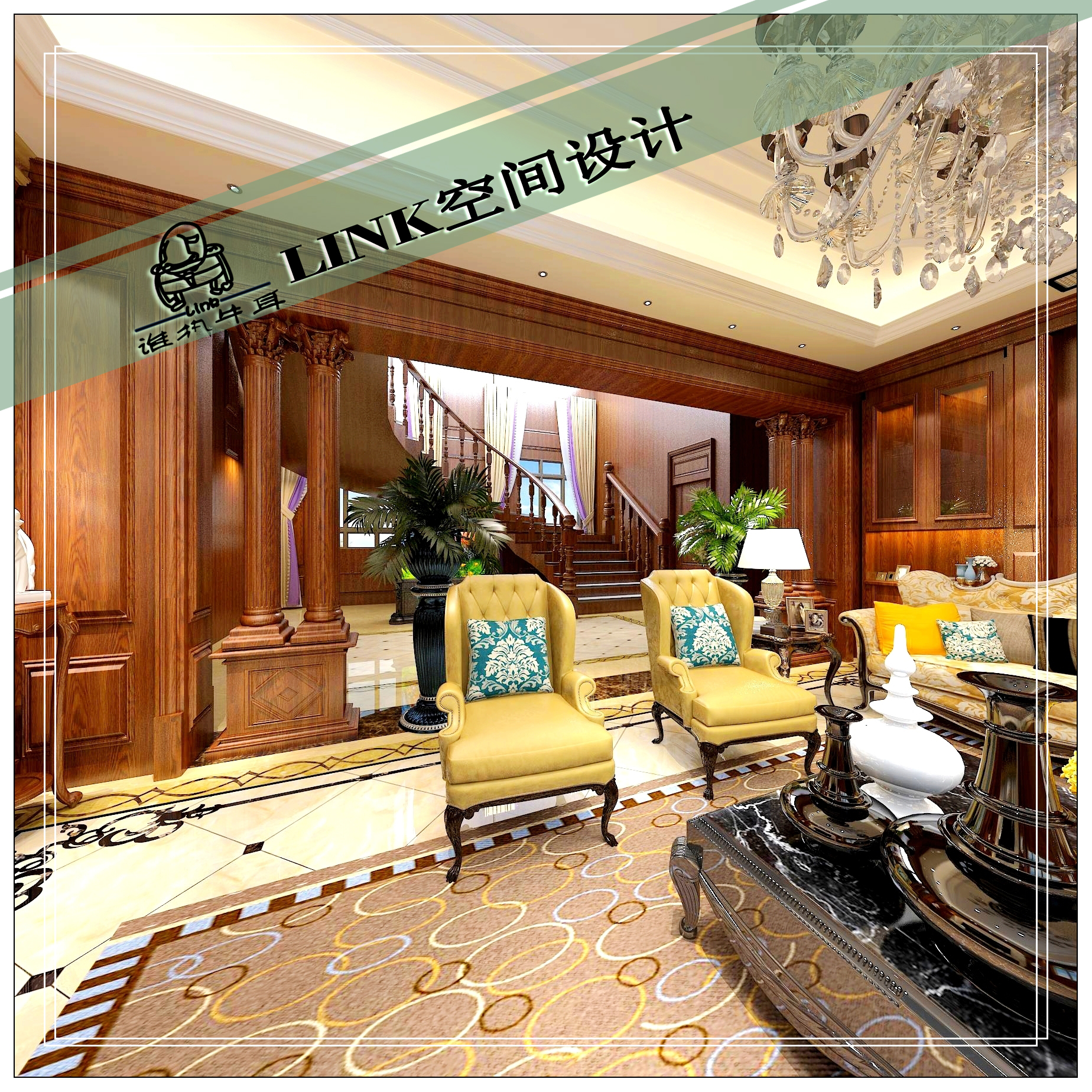 中式护墙板楼梯别墅设计