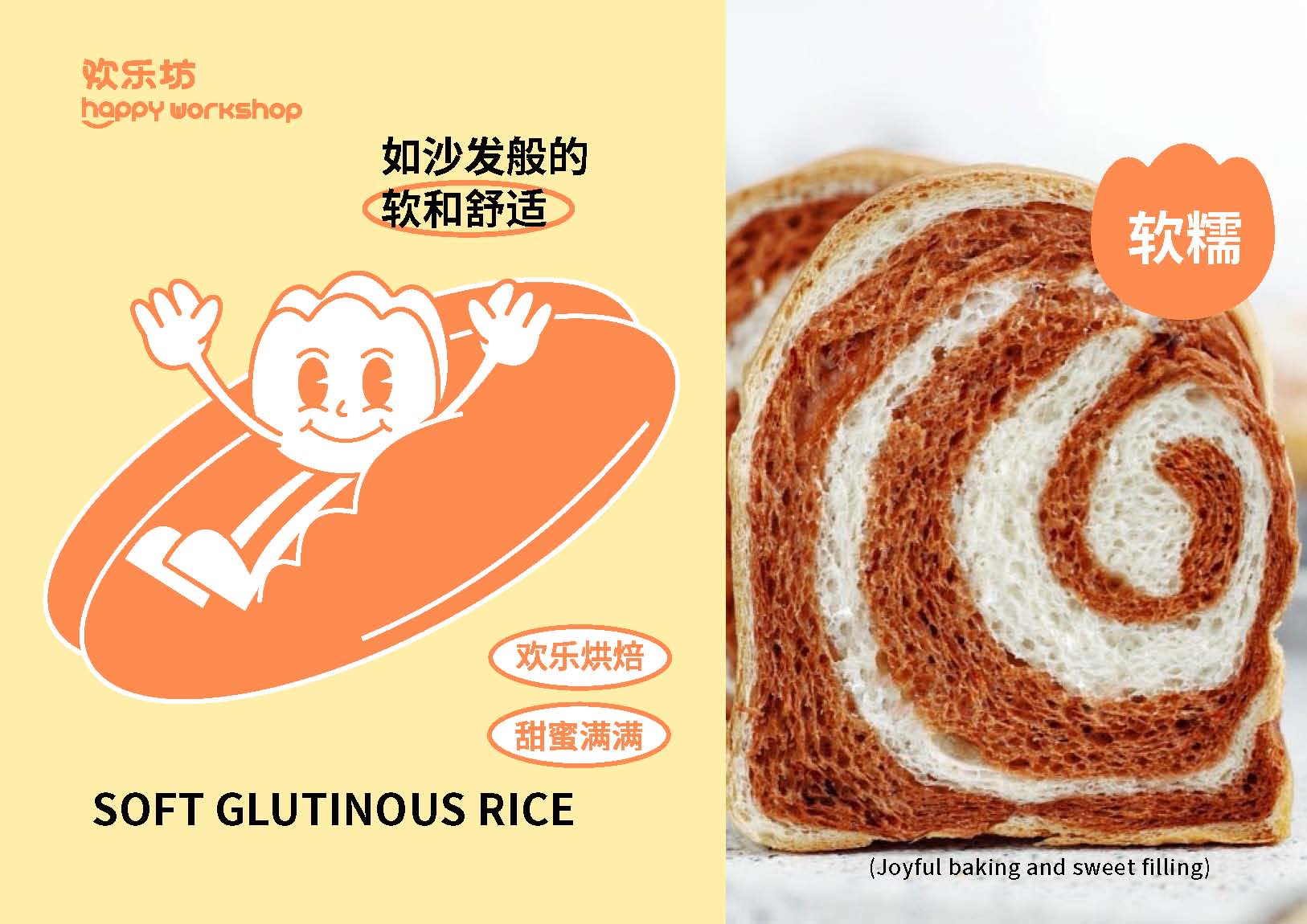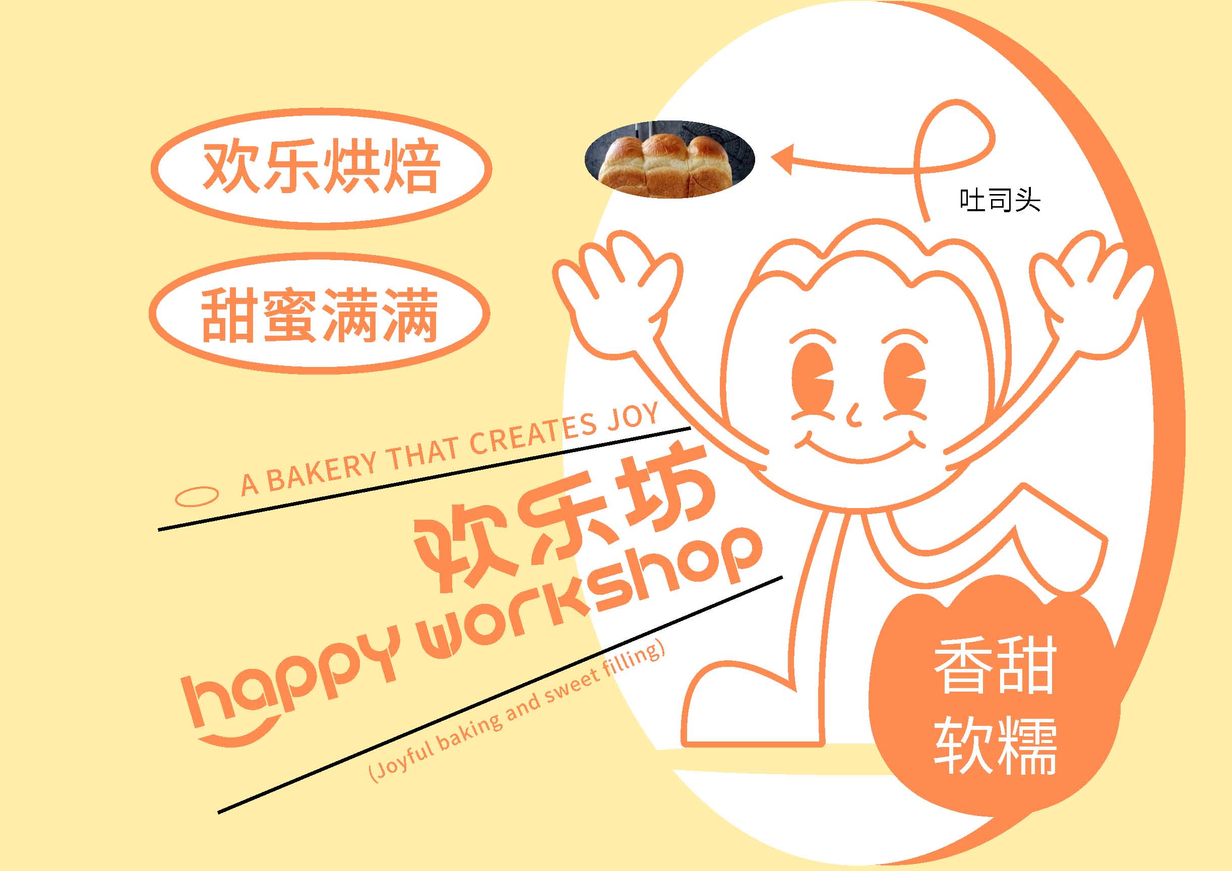 Under the pressure of work and life, the spirituapressure of young sages increases. We hope to bringdelicious food to the taste while also bringing spiri-tualjoy and relaxation to young consumers throughbaking sweet food. This design revolves around therelaxed and cheerful brand name.