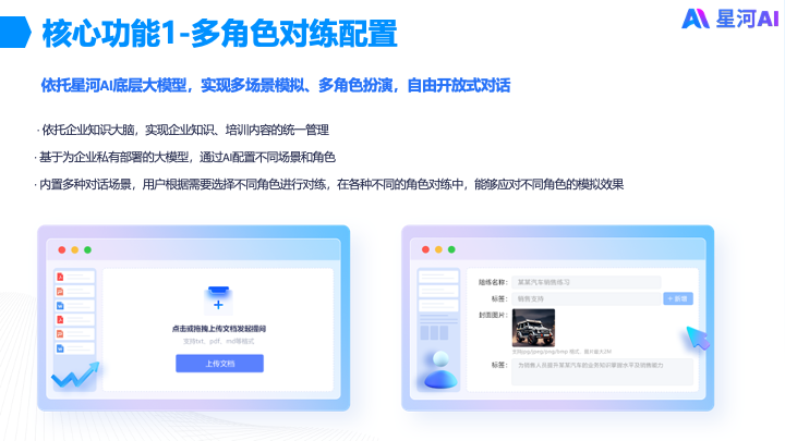 · 基于为企业私有部署的大模型,通过AI配置不同场景和角色