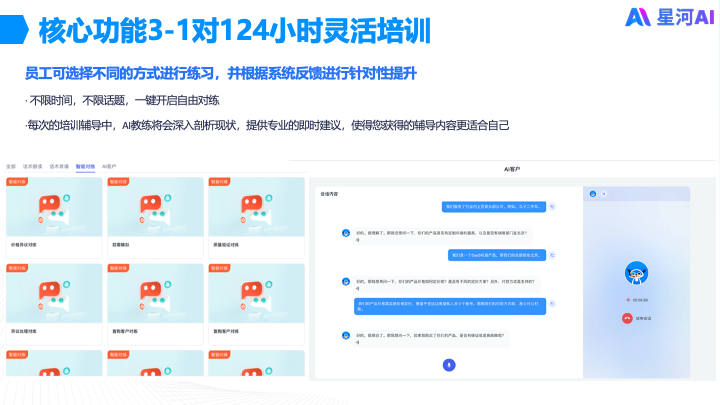 “星小问”智能陪练,专为企业各服务场景打造,融合星河AI大模型及多项AI技术,助力员工提升专业服务水平提高培训师课程开发效率,为企业创造价值。
