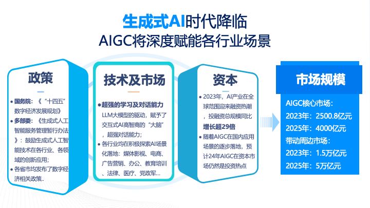 我们通过自研底层技术融合国内外优质AI大模型,推进AIGC和行业深度融合。