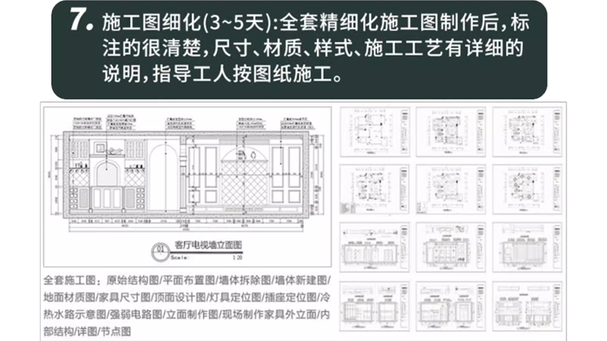 团队从客户只给我们尺寸图,和现场照片,大概功能要求,设计平面布置图,做出整体的效果图,局部效果图,包含了CAD施工图,上会方案PPT,完整的设计方案提案,提供高质量的设计服务,我们都将运用专业的设计理念和技术为您量身定制.