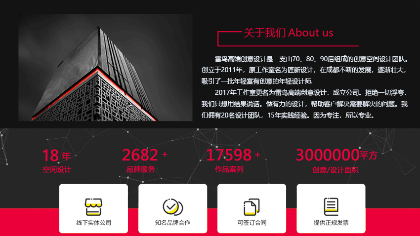 团队从客户只给我们尺寸图,和现场照片,大概功能要求,设计平面布置图,做出整体的效果图,局部效果图,包含了CAD施工图,上会方案PPT,完整的设计方案提案,提供高质量的设计服务,我们都将运用专业的设计理念和技术为您量身定制.