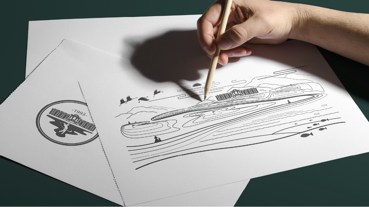 经过与需求方反复的讨论,最终确定以该度假村最经典的建筑外立面和高尔夫运动为基点,以徽标形式来升级标志。